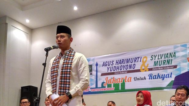 Momen ini terjadi di Kantor DPP Partai Demokrat, Jakarta Pusat, Jumat (23/9/2016) malam. Agus yang baru selesai mendaftar ke KPU DKI bersama cawagub Sylviana Murni, lalu berpidato dan menceritakan proses 'kilat' dirinya menjadi cagub DKI.